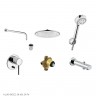 ОснащениеСмеситель для ванны и душа, душевой гарнитур, верхний душ, кронштейн, излив для ванны, клапан защиты от обратного потока
